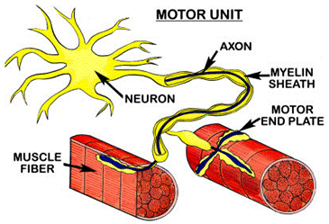 The individual motor neuron plus the muscle fibres it stimulates, is called a motor unit. The motor end plate (also known as the neuromuscular junction) is the junction of the motor neurons axon and the muscle fibres it stimulates.